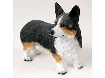 Welsh Corgi Cardigan figurine measures between 3" to 4" tall. Made of a stone resin and hand painted.
