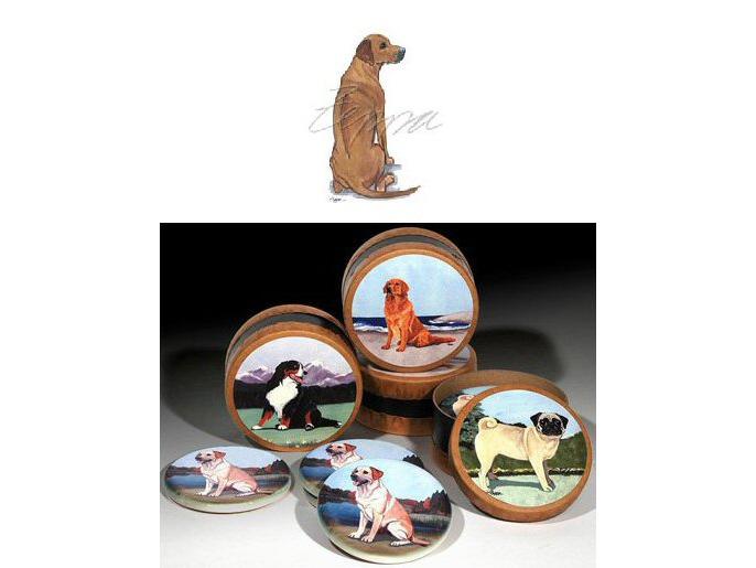 Almost too pretty to use...our 4 inch round bisque coasters come beautifully packaged in sets of four. Choose your background from Beach, Yard, Lake or Mountain. The backgrounds may vary slightly to accommodate the various breed poses.